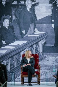 La Dra. Mercè Morales, presidenta de la SCEH, a l’acte d’homenatge als diputats del primer Parlament de Catalunya de 1932, reunits per primera vegada al saló de sessions el 6 de desembre de 1932.